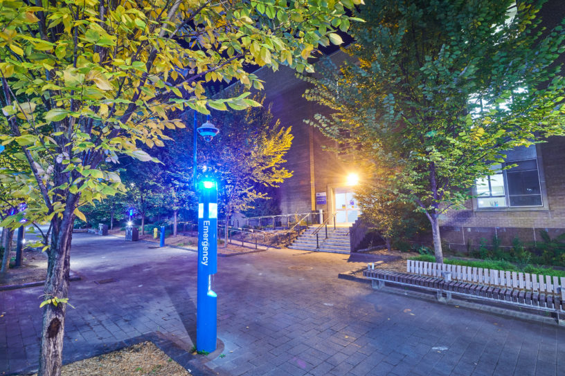 “Stay alert, be safe and don’t forget about the blue emergency poles where security will arrive in [two minutes],” the post reads.