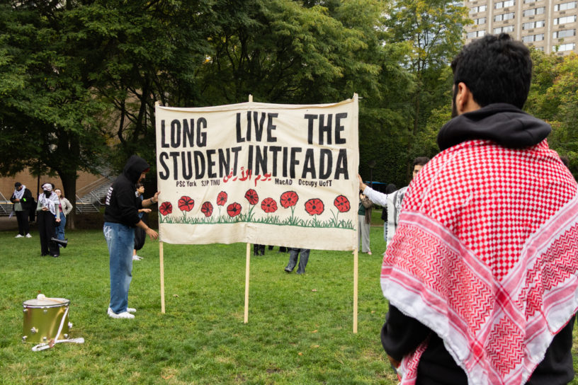 The rally was announced as an emergency walk-out on TMU Students for Justice in Palestine’s (SJP) Instagram account and through posters pinned up